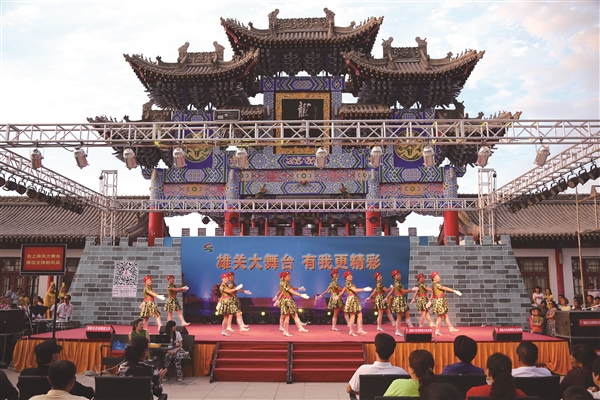 雄关秋夜,华灯初上。讨赖河畔夜光楼广场上,伴随着优美辽阔、婉转动听的民族音乐,天真烂漫的少男少女用灵动的舞步、曼妙的身姿把现场观众带进了一方高远、深邃的圣土,让人感受到了一场安宁、祥和的精神洗礼……