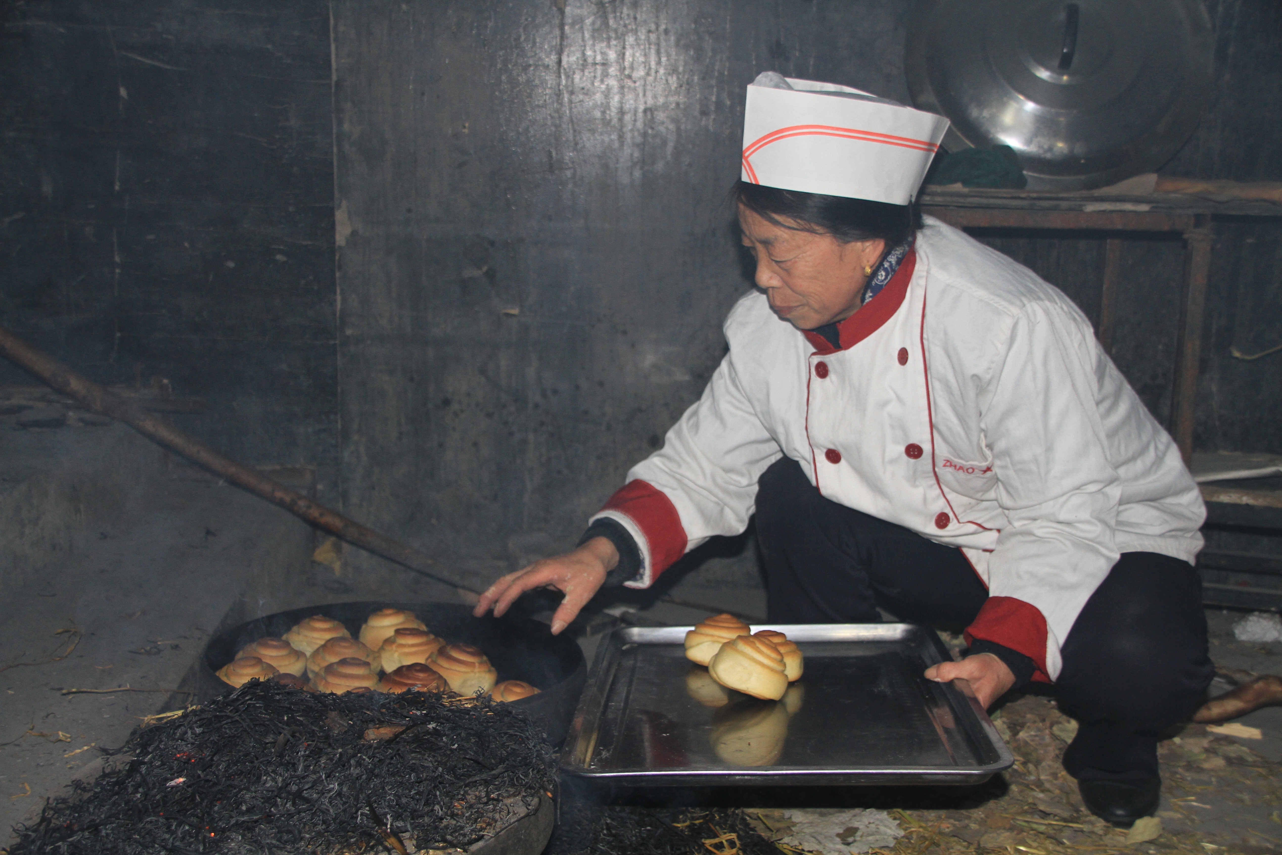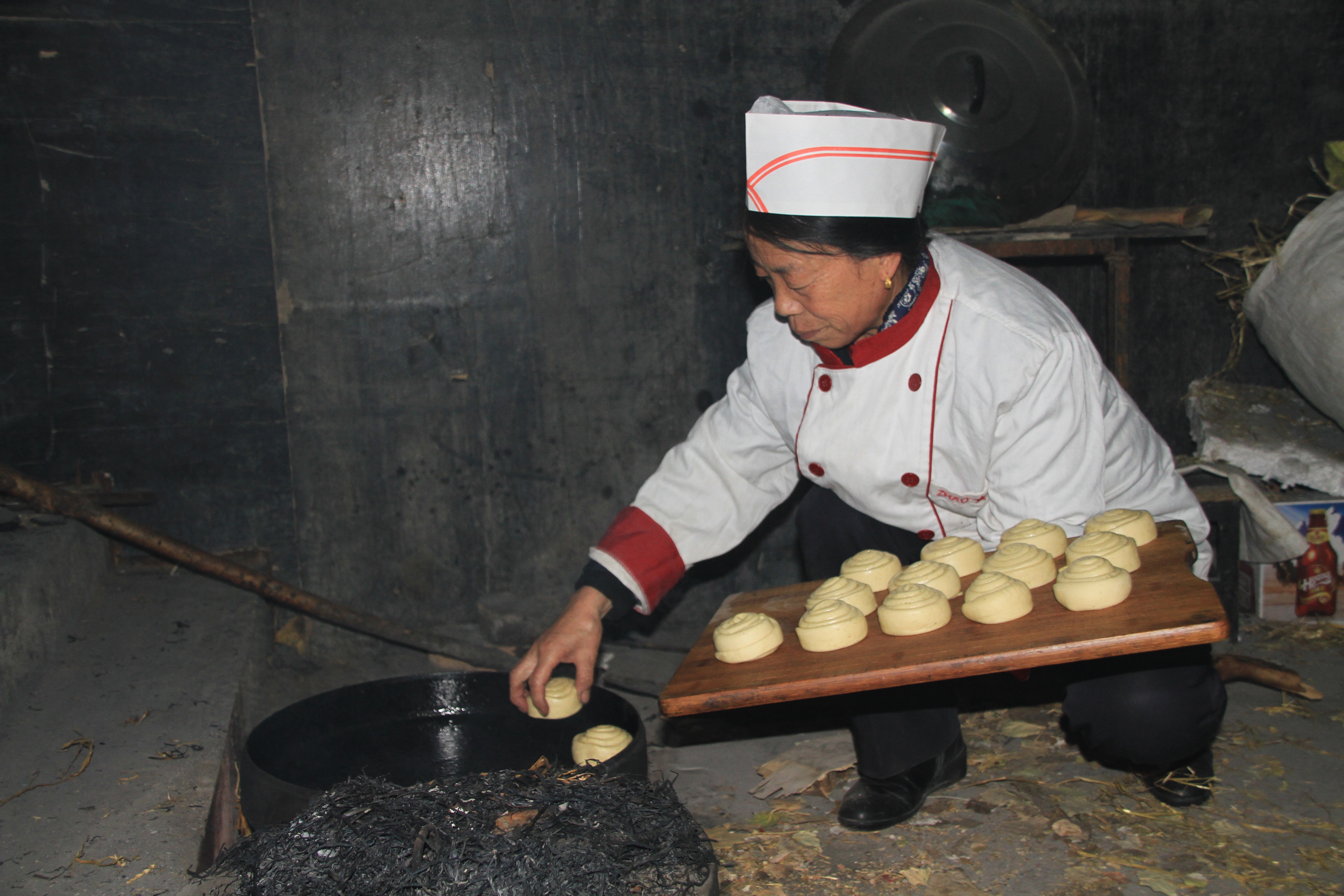 生火架锅后放入烧壳子