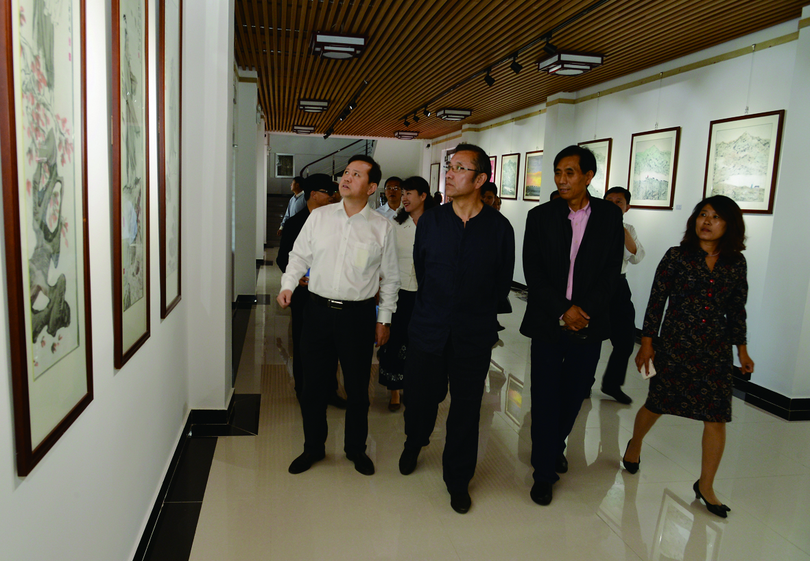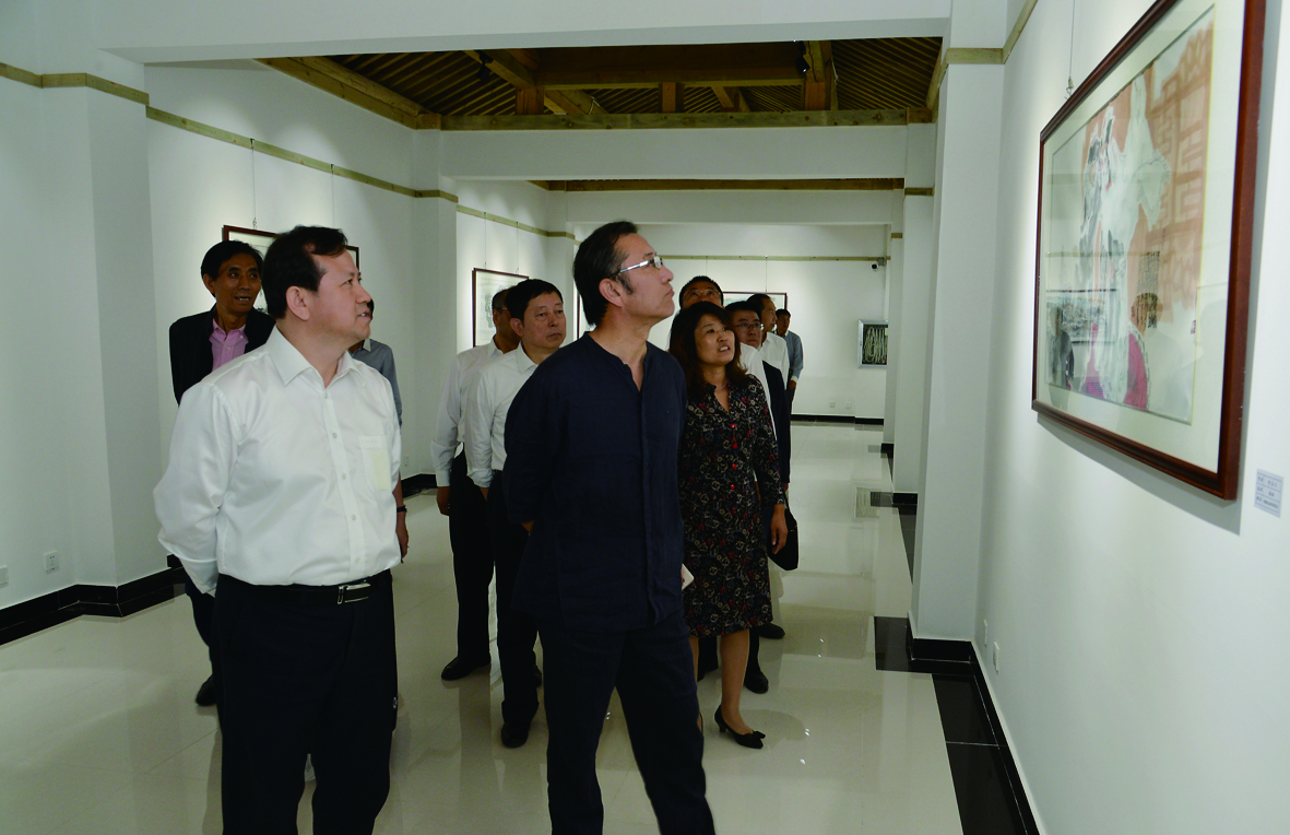 当天,连辑、柳鹏一行参观了李宝堂、巨潮、李志天、包少茂四位丝路名家展出的美术作品。
