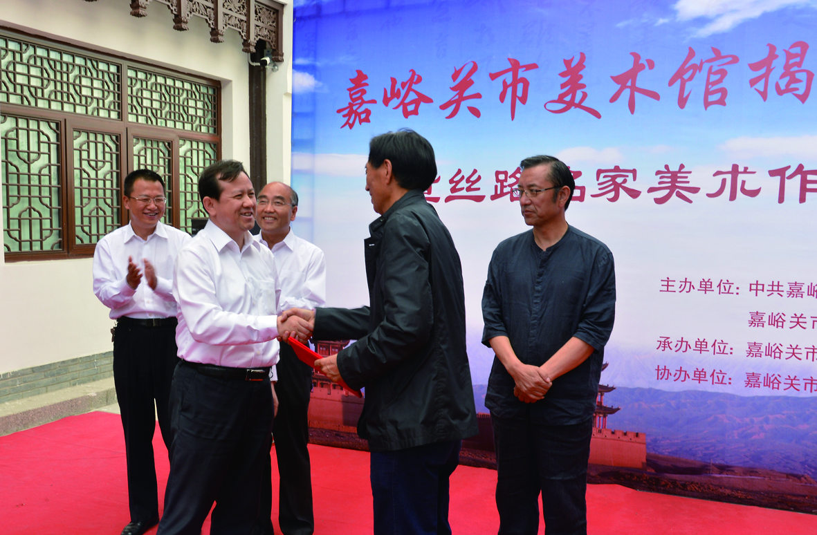 9月22日,嘉峪关市美术馆揭牌仪式暨丝路名家美术作品展在讨赖河北岸文化风情街举行。