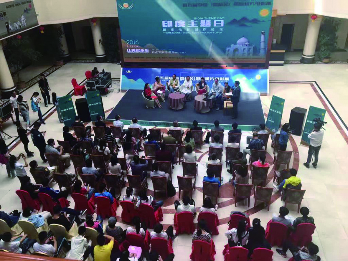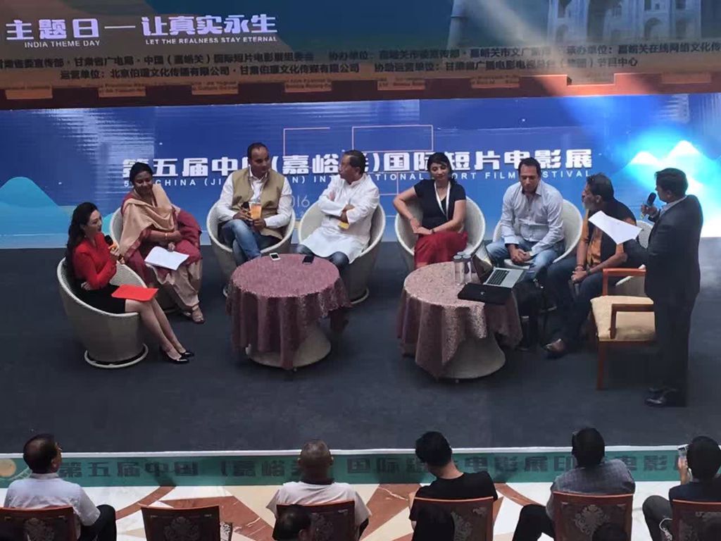 9月22日下午,第五届中国(嘉峪关)国际短片电影展“印度主题日”活动暨“印度电影创作论坛”在嘉峪关国际大酒店举行。在印度新闻和广播部、电影节组委会副主任里兹文·艾哈迈德及英德拉尼·博斯(女)的带领下,印度嘉宾团的著名纪录片制片人巴帕·雷、伊拉姆·古弗兰(女)、马卡兰·布拉姆、普拉默·珀斯韦恩均出席了这一活动,与现场电影电视界的专家学者进行交流。