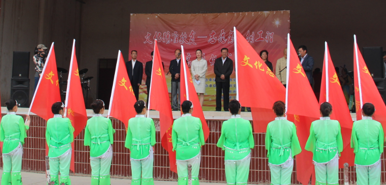 启动仪式由文广新局贾光军局长主持,市上领导给入村辅导的十七位志愿者授旗。
