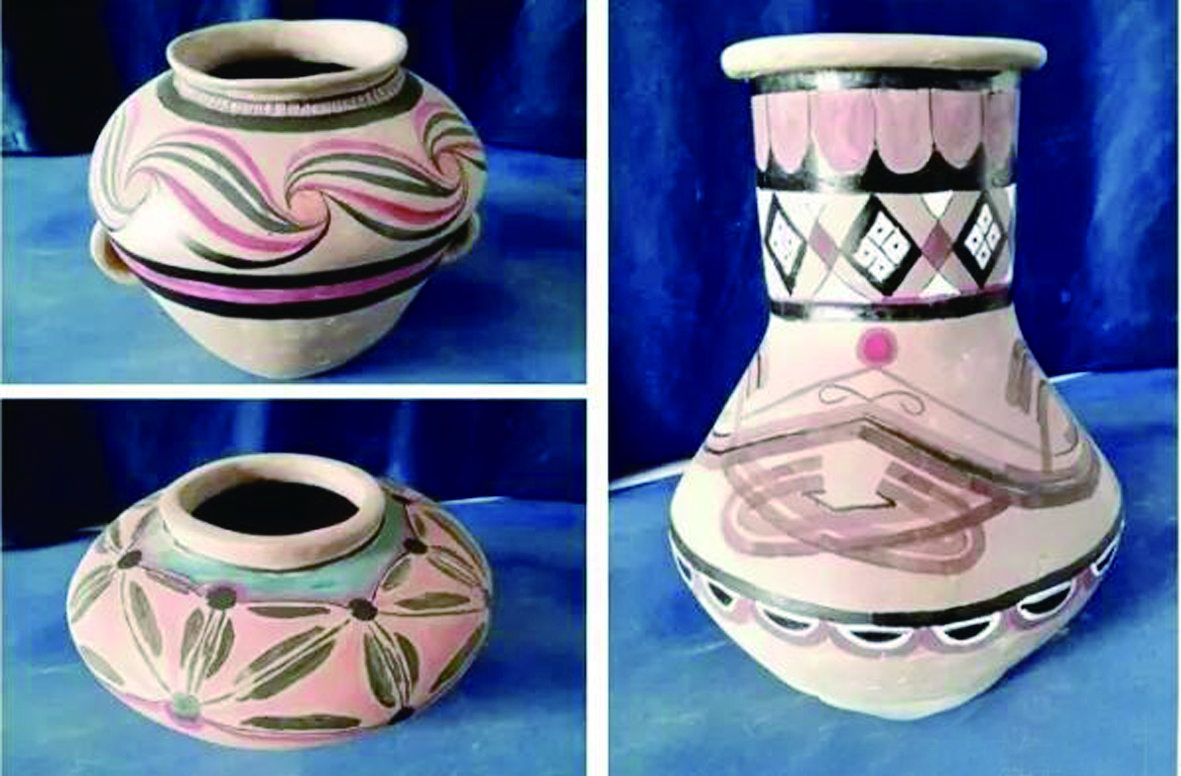 谢晓锋会经常出去参观一些艺术品,也会留心观察生活中的小细节,比如有一个婴儿的作品,是当时看到叙利亚战争中,一个去世的小男孩被海水冲上岸边,很有感触,就做了一个孩子的泥像;还有一次,在医院看病,一个孩子的妈妈为了鼓励孩子,和孩子击掌,他当时就记下了这个瞬间,回去做了一个作品。谢晓锋的彩陶作品不是用转子转出来的,是纯手工制作,模仿甘肃省的马家窑文化,使用的也是古人的泥条堆筑法,做出来的成品会稍微有一点偏,是自然的。