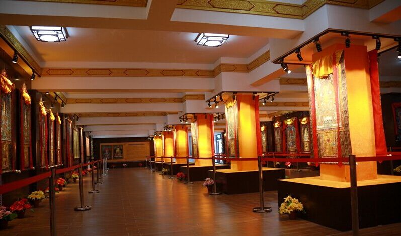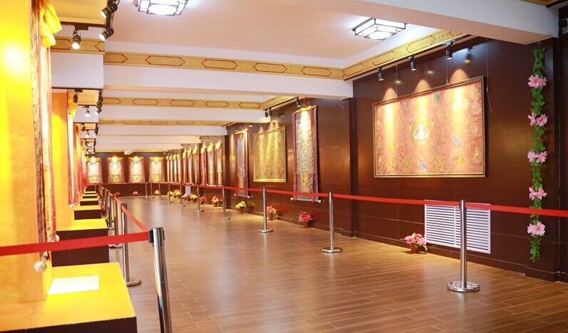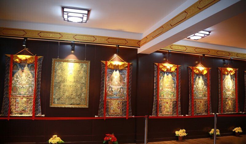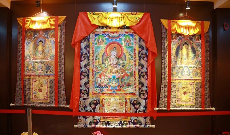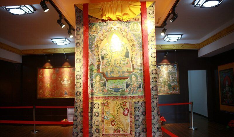 唐卡在全民信仰佛教的藏区,就是“可以流动的佛龛”。具体就是用彩缎装裱后悬挂供奉的卷轴画。
