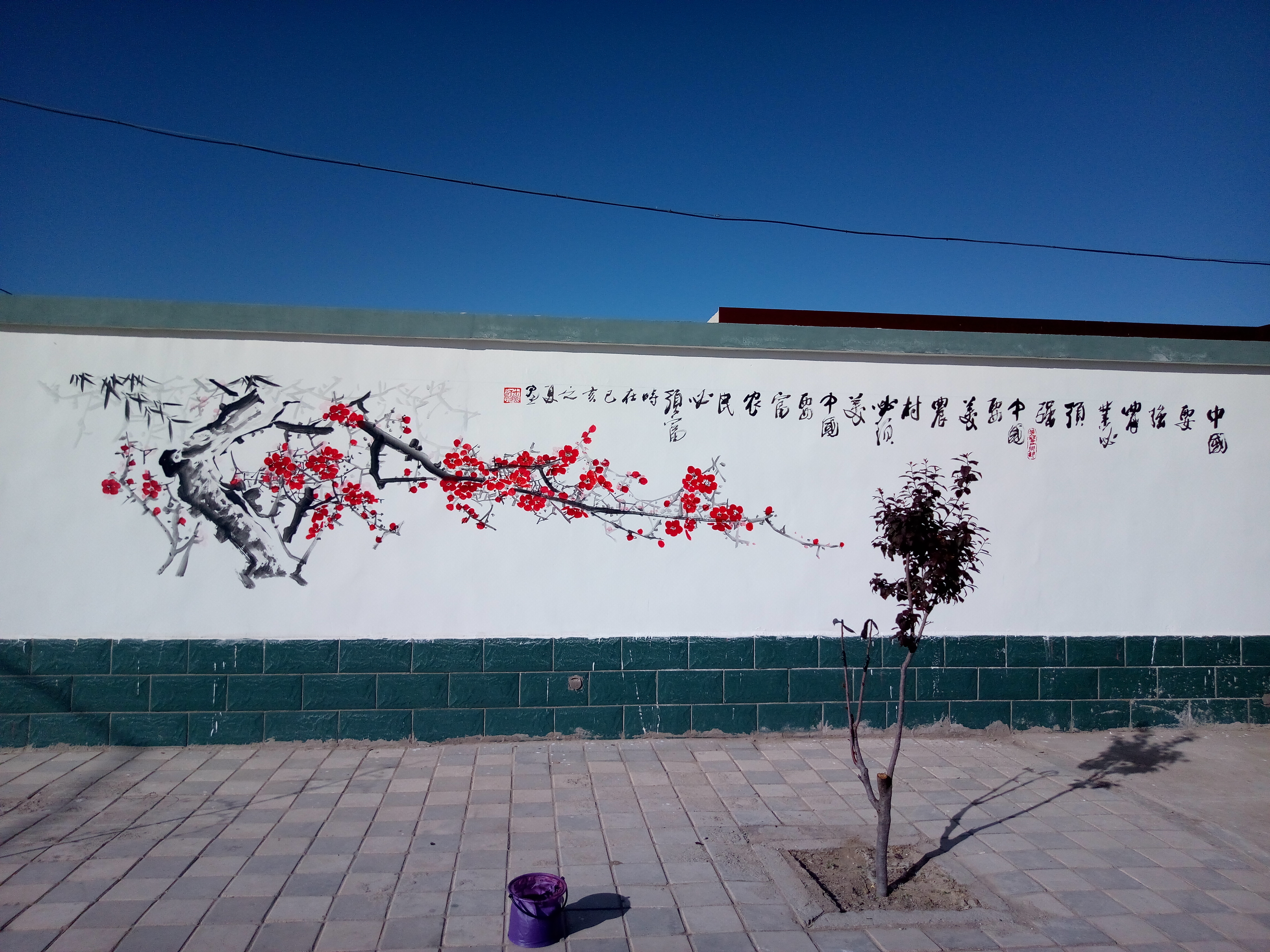 此次文化墙的绘制,是为美丽乡村建设助力。因村制宜,以村民喜闻乐见、通俗易懂的传统国画与习总书记的讲话、村规民约、宣传标语等相融合,使美丽乡村建设的内容变得生动形象,更接地气,易于接受。让每堵墙壁都会“说话”,让“文化墙”成为深受群众欢迎的政策明白墙、美德教育墙、文明新风墙,从而,将精神文明内化于心、实践于行,为建设和谐优美、文明有序的美好新家园添彩。