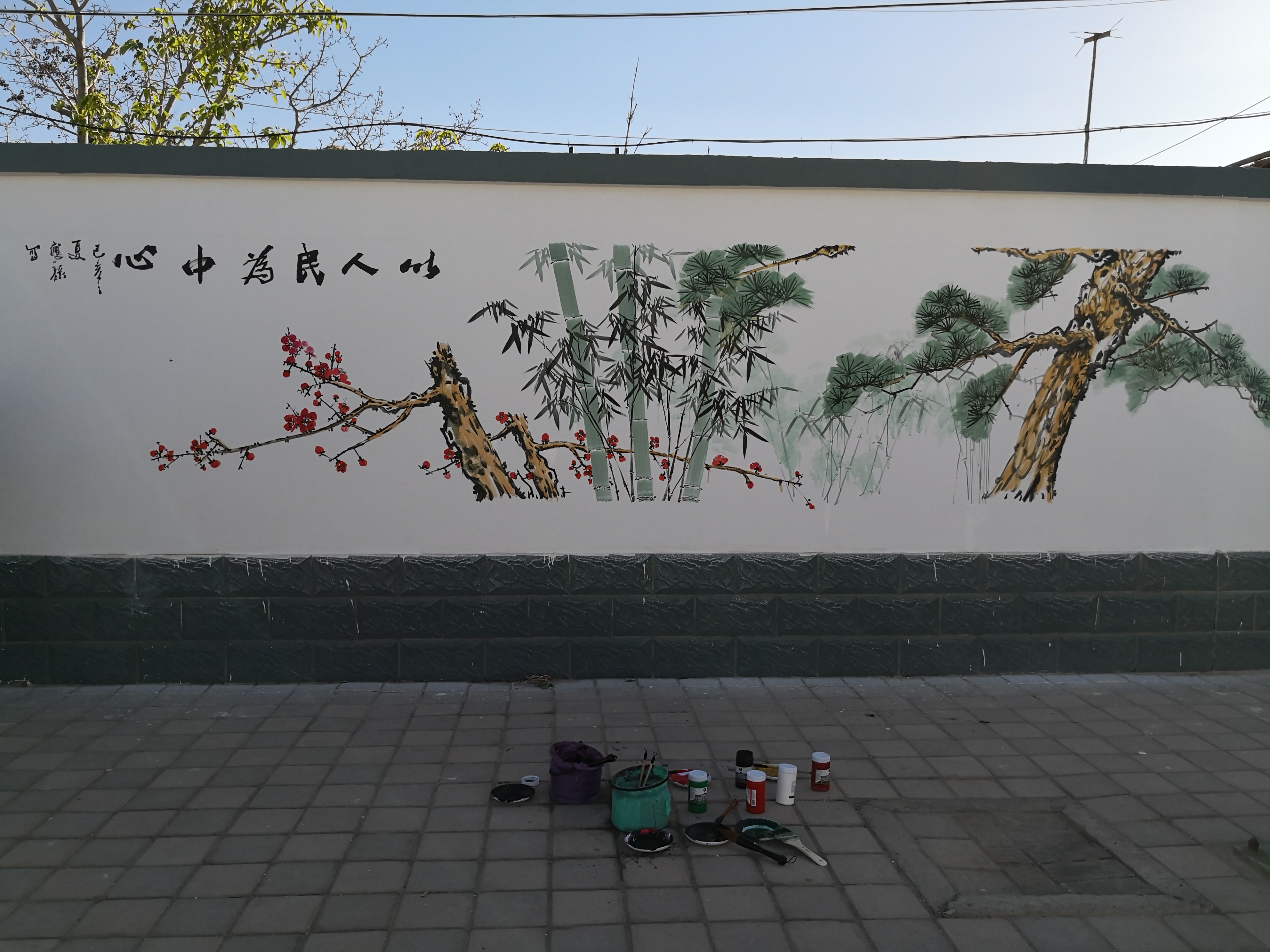 一天的时间,志愿者们在新城村画了五副大幅墙画,有的气势磅礴,有的富贵祥和,有的清新雅致,有的超凡脱俗。获得了村民们的一致好评。