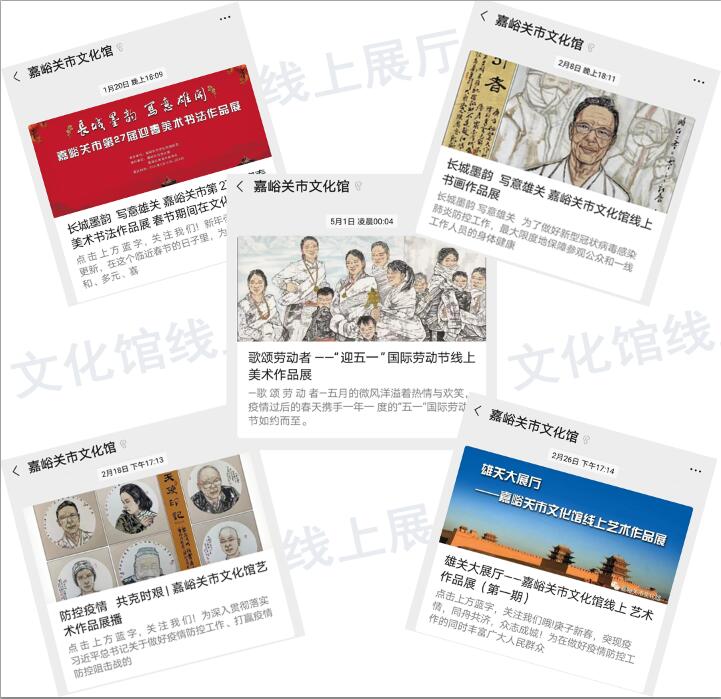 嘉峪关市文化馆推出的“雄关大展厅”在线看展览活动,从2020年1月20日开始,以不定期的方式推出38期。作品征集活动一经发起,众多书画摄影爱好者纷纷响应,踊跃投稿,内容涵盖国画、油画、书法、摄影等艺术门类。这是文化馆用新的模式来满足人民群众对精神文化需求的一次尝试,也在全市人民群众中引起了强烈反响。