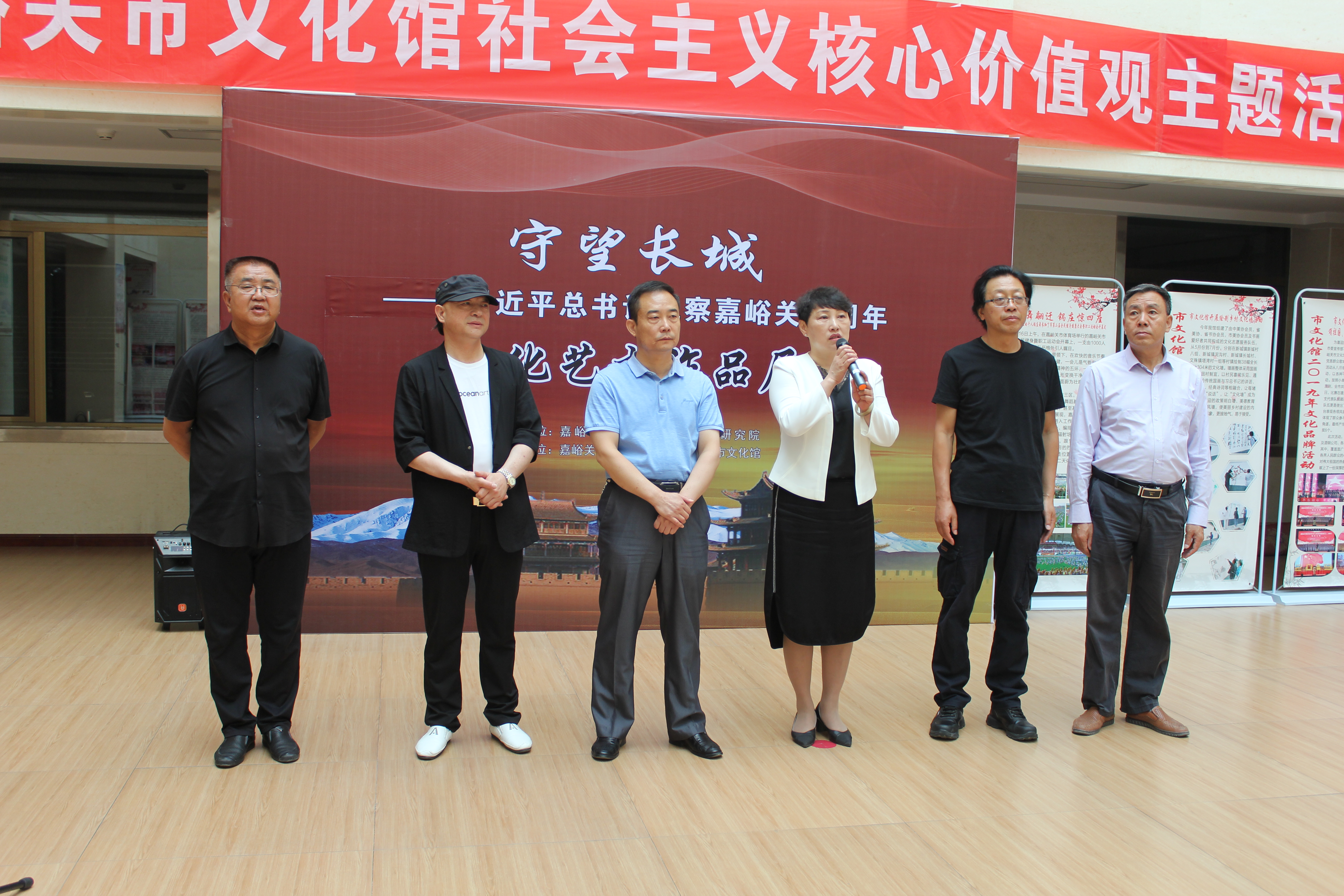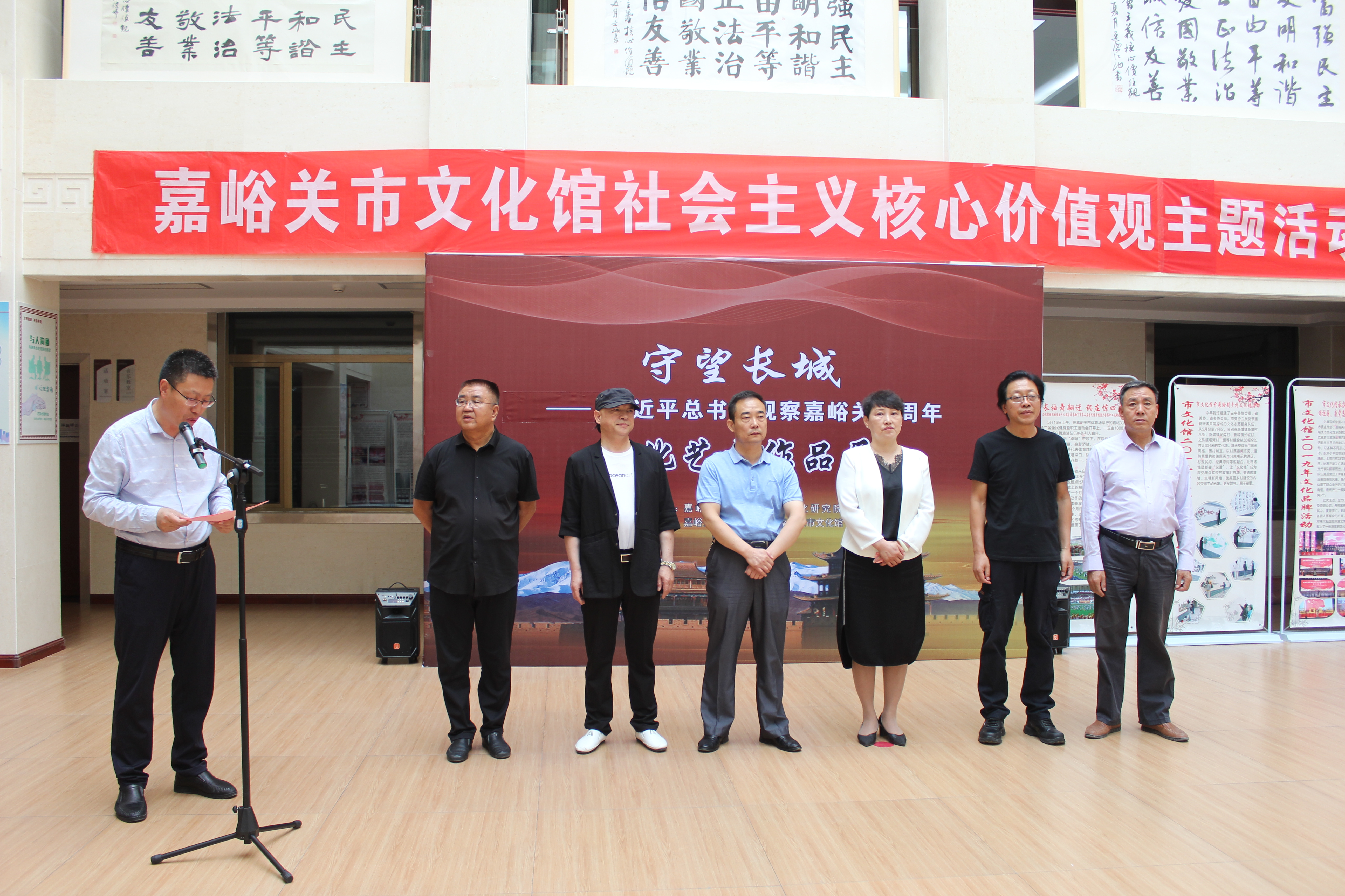 8月11日,由嘉峪关丝路(长城)文化研究院主办,市文化馆、市书法家协会承办的“守望长城一一习近平总书记视察嘉峪关一周年”文化艺术作品展在文化馆举行了开幕式。开幕式由丝路(长城)文化研究院院长陈新长主持,副市长王莉春宣布开展。出席开幕式的还有市委宣传部、市文联、市文化馆、市书法家协会、市作家协会等单位的主要负责同志和代表。