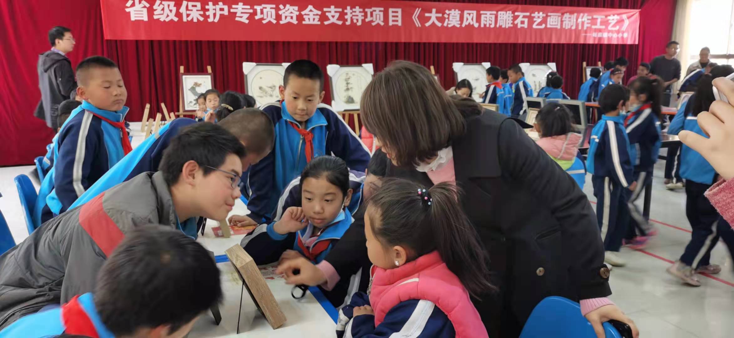 为庆祝中国共产党成立100周年,学习中华传统文化,促进非遗知识普及,进一步提高青少年保护传承非物质文化遗产意识。4月16日,市非物质文化遗产保护中心组织开展省级非遗项目《大漠风雨雕石艺画制作工艺》走进峪泉镇中心小学,全校师生积极参与。