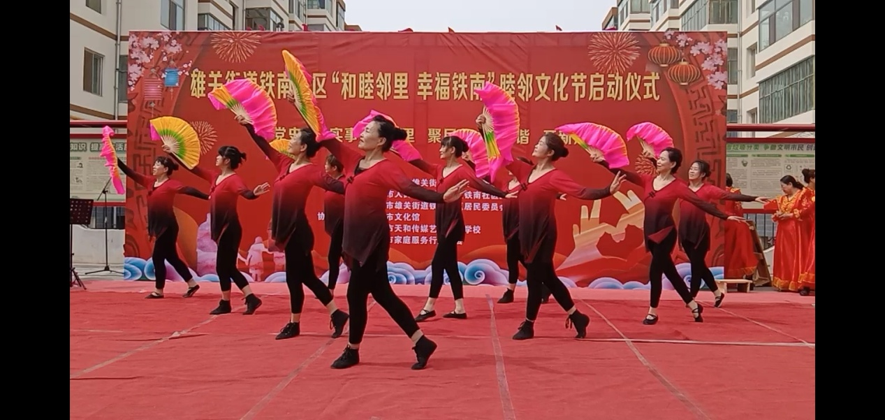 2021年4月18日嘉峪关市文化馆作为协办单位,组织市民艺术学校舞蹈班的30余名学员带着舞蹈《芳华》、《红梅赞》参与了雄关街道铁南社区“和睦邻里 幸福铁南” 睦邻文化节活动的演出,学员们在活动中的精彩表演赢得了现场领导及300多居民的热烈掌声好评.通过铁南社区的这次活动,学员的积极性也被更好的调动了起来,她们非常感谢嘉峪关市文化馆为大家提供的这样的学习平台,也表示会以更大的热情继续投入到学习当中。
