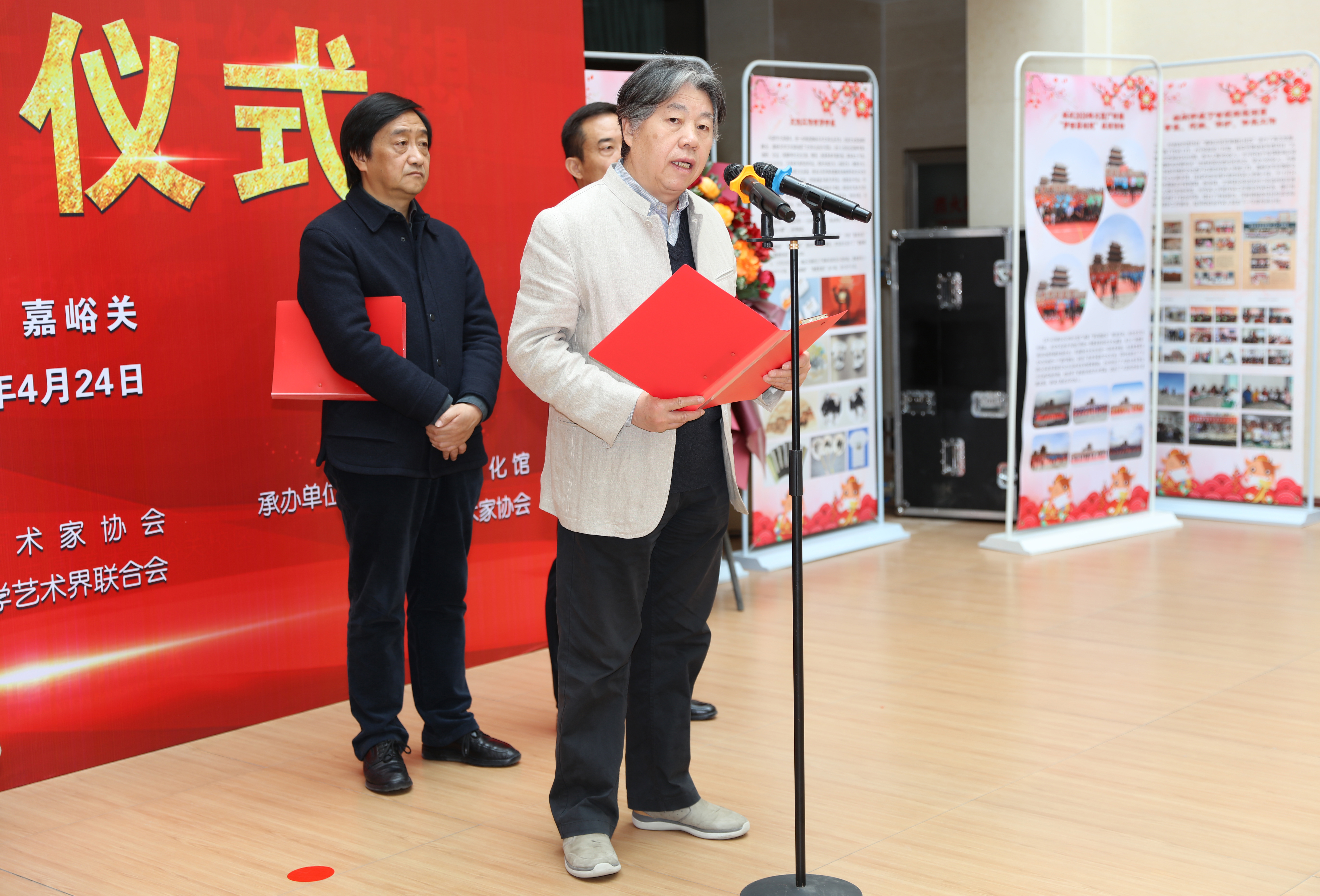省文联副主席、省美协主席马刚代表省美术家协会向嘉峪关市文化馆授牌