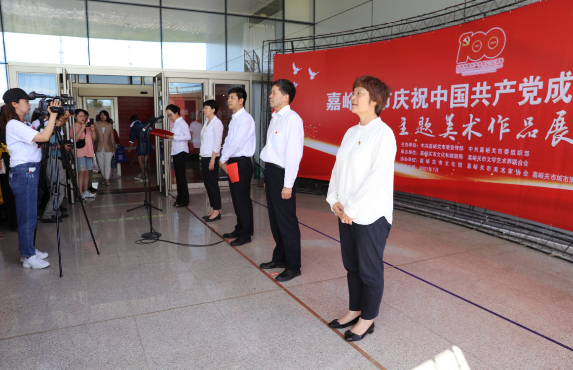为隆重庆祝中国共产党的百年华诞,激励全市美术工作者用绘画作品颂扬党的丰功伟绩,展现中国共产党走过的光辉历程,赞美党带领人民所取得的伟大成就,描绘百年来中华民族壮丽的历史画卷,7月2日上午,由中共嘉峪关市委宣传部、中共嘉峪关市委组织部主办,嘉峪关市文化和旅游局、嘉峪关市文学艺术界联合会承办,文化馆、城市博物馆、美术家协会协办的《嘉峪关市庆祝中国共产党成立100周年主题美术作品展》,在城市博物馆隆重开幕。