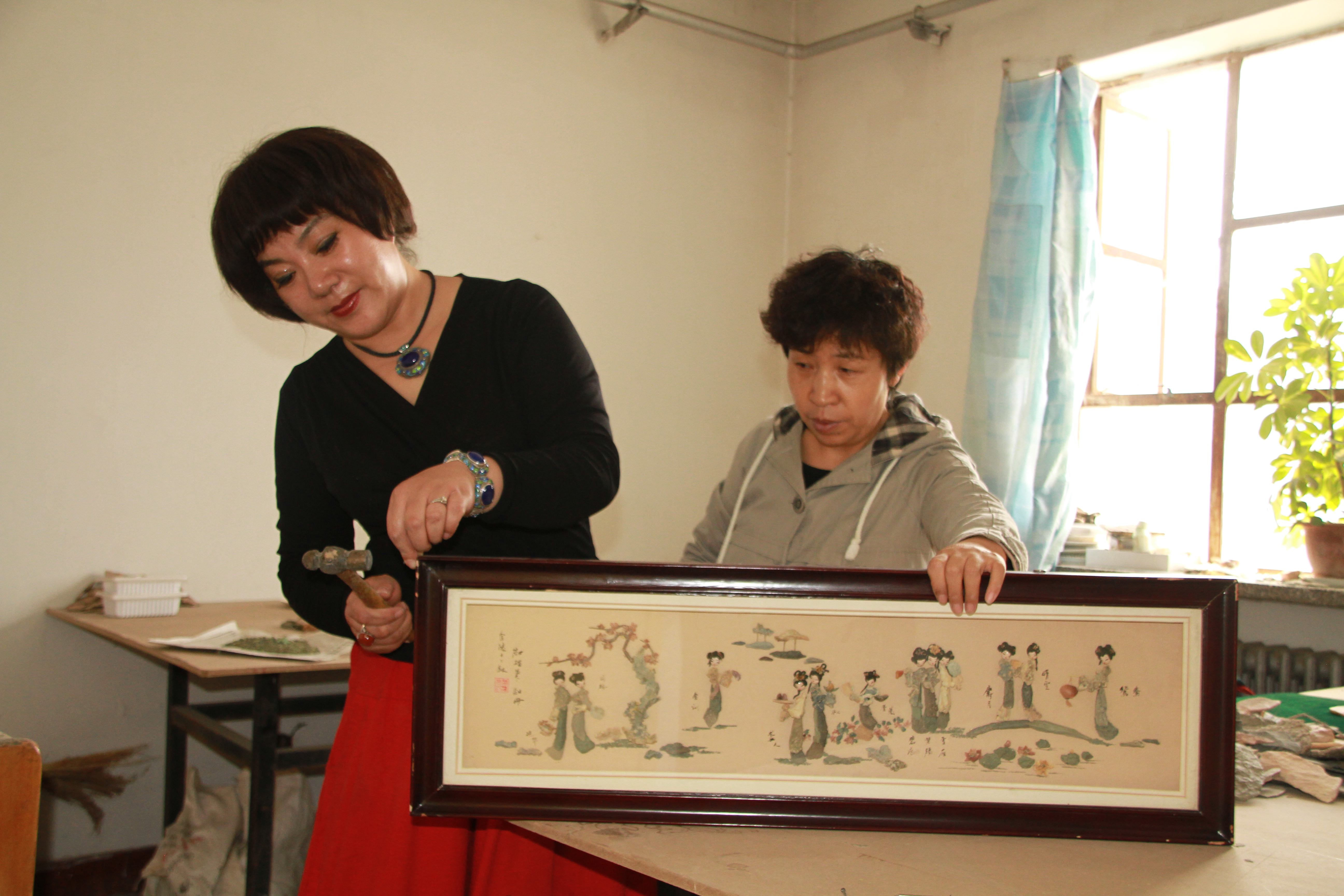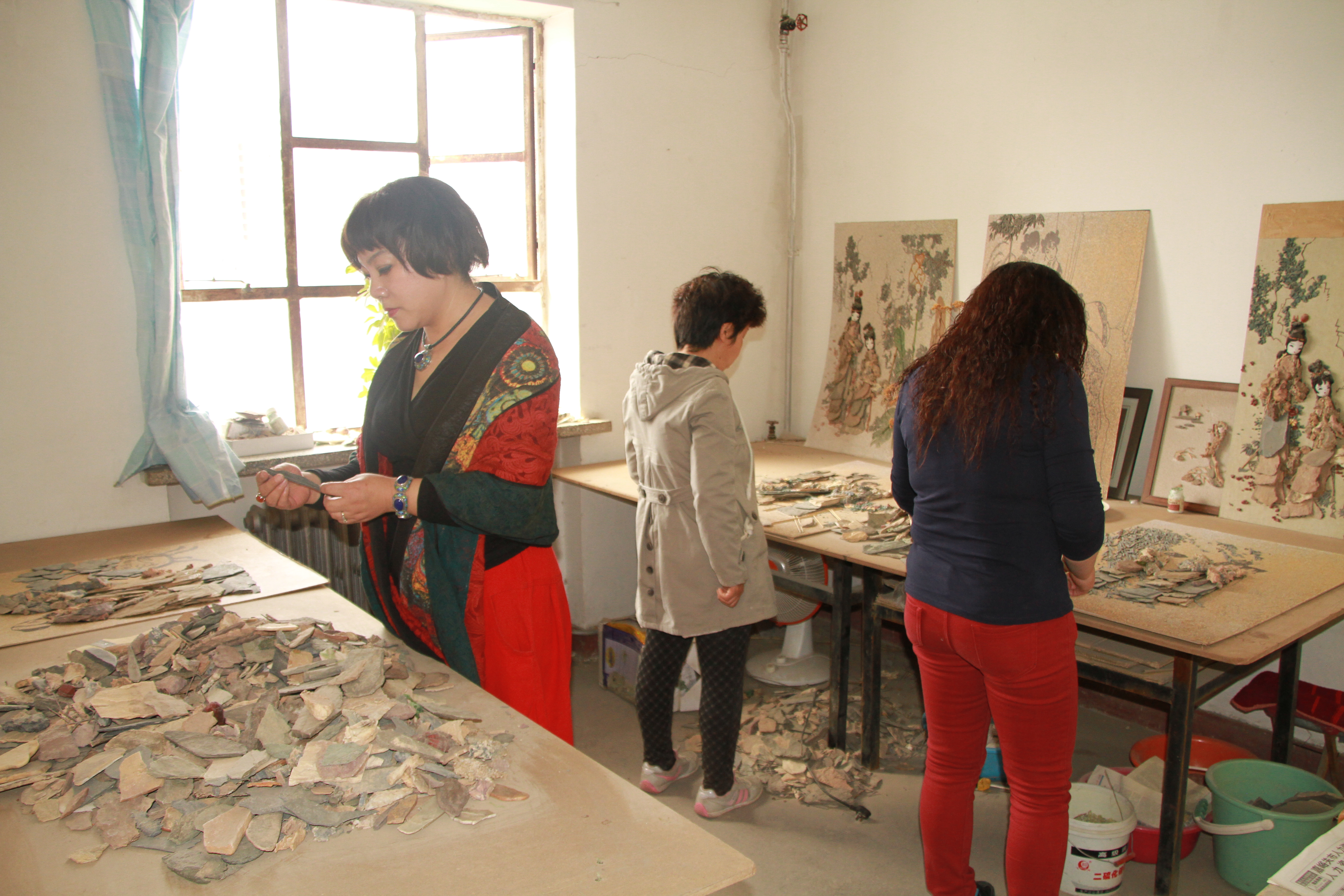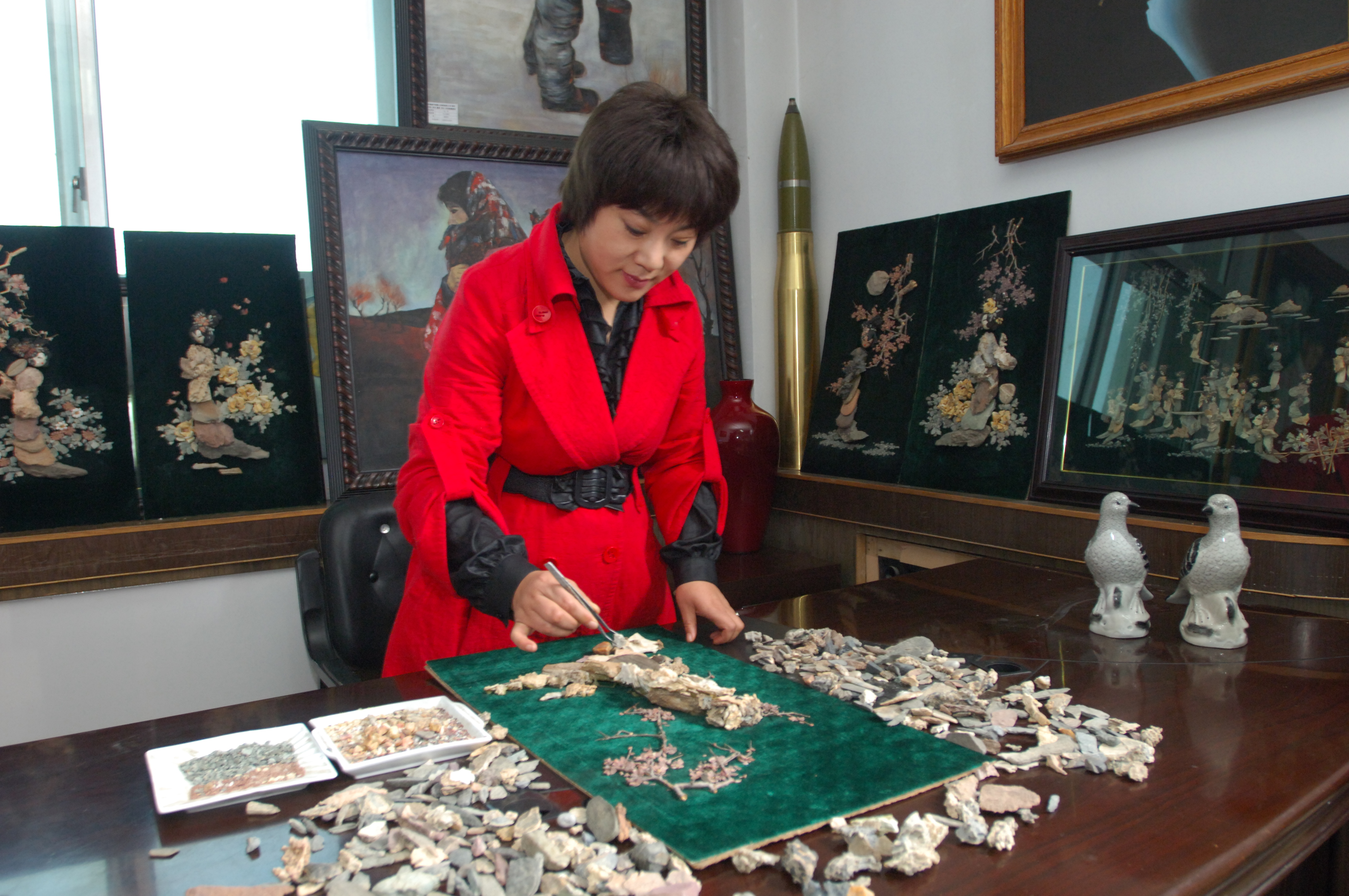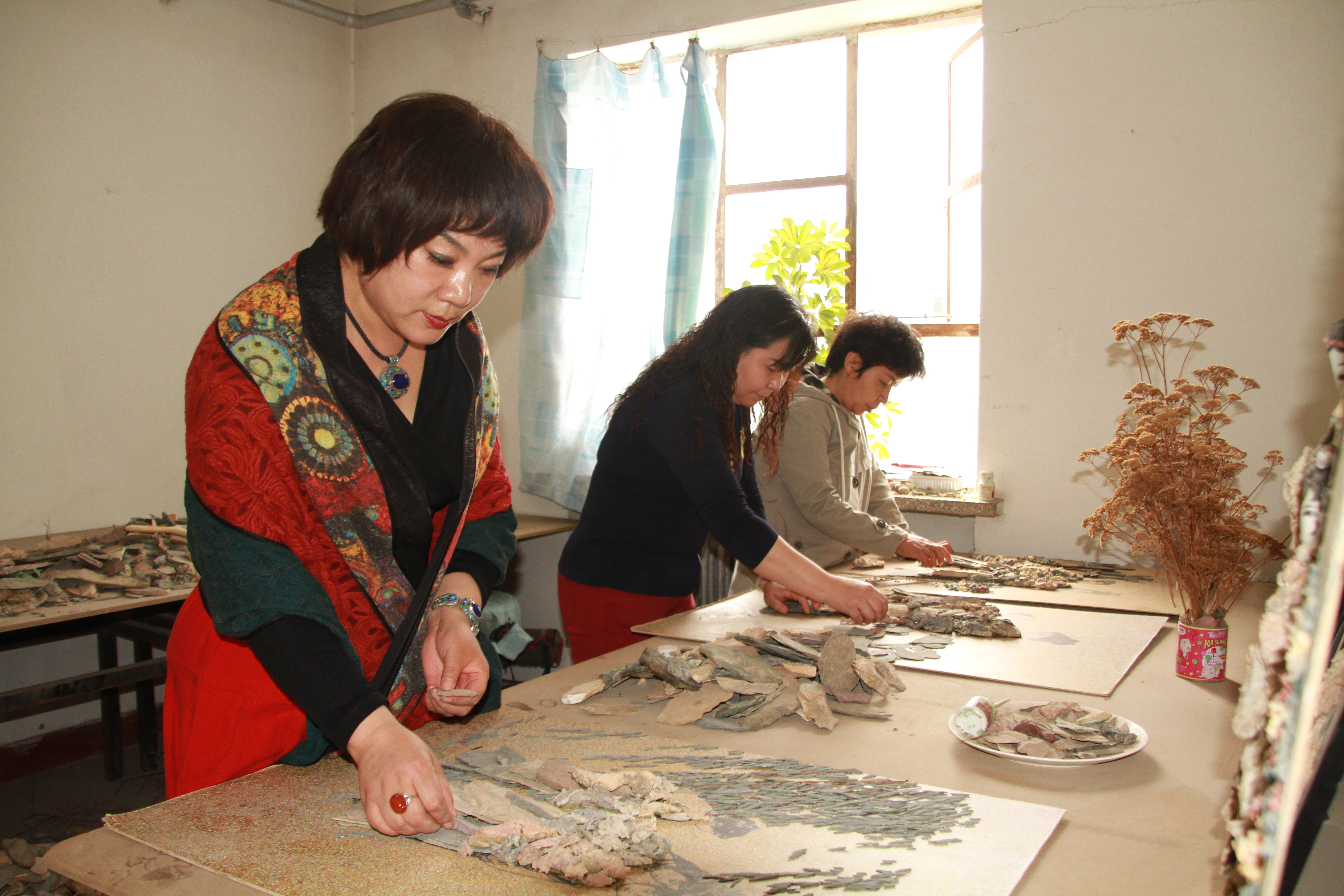 大漠风雨雕石艺画(简称石艺画),是以中国西北地区天然风雨砺石为原料,运用传统镶嵌粘贴工艺手工制作的工艺美术画。该画传承了中国古代“石材拼图”的手工技艺,设计精湛、选料精致、制作精巧、造型独特,富有中华民族特色和西部地域特色。
