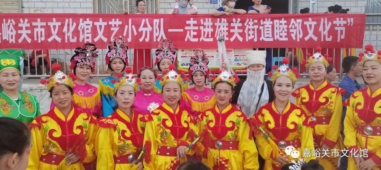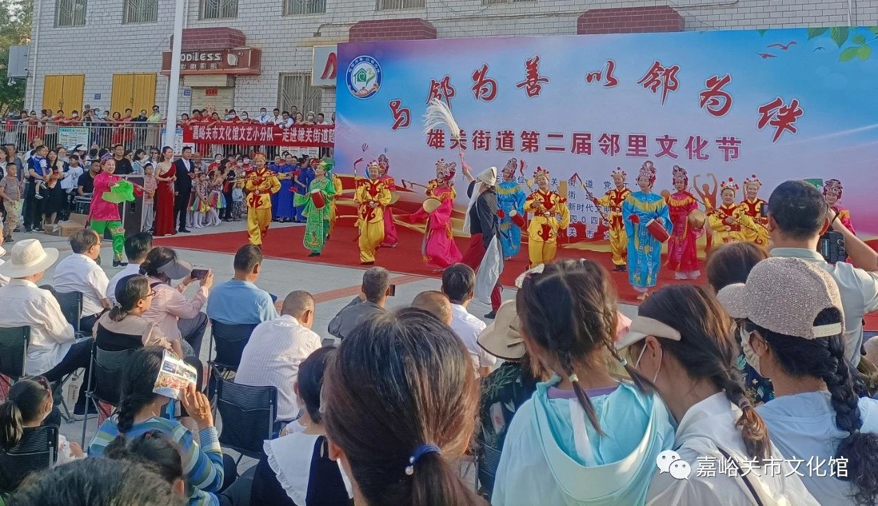 为深入学习宣传贯彻党的二十大精神,丰富社区居民的精神文化生活,深入推进新时代文明实践工作,7月5日晚,嘉峪关市文化馆组织文艺小分队走进雄关街道,为雄关街道举办的“与邻为善 以邻为伴”第二届邻里文化节开幕式带来了精彩的非遗舞蹈《欢天喜地》,受到了社区居民的热烈欢迎。