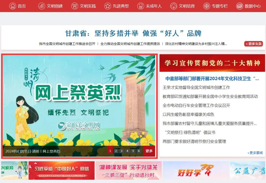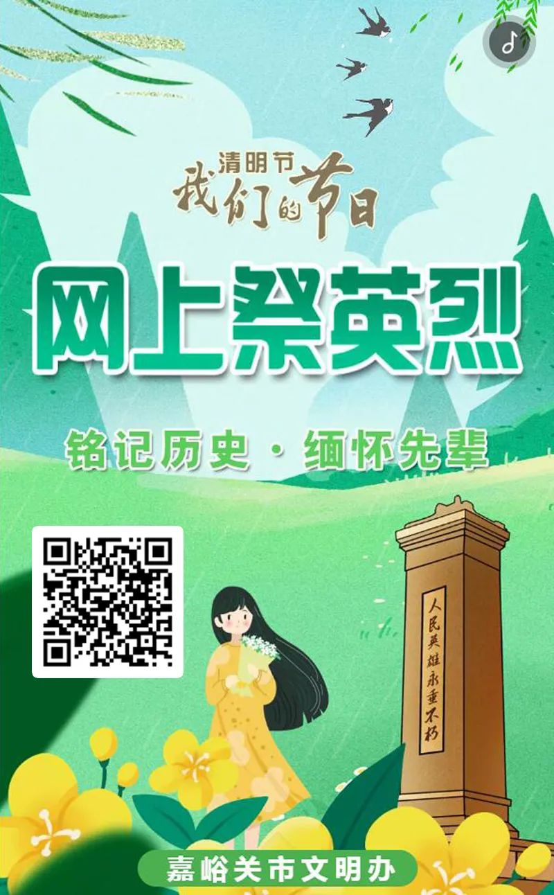 为深入学习贯彻习近平文化思想,大力培育和践行社会主义核心价值观,传承弘扬英烈事迹和精神,引领崇尚、缅怀、学习、捍卫英烈的风尚,嘉峪关市文明办在清明节期间开展“网上祭英烈”活动,引导广大市民群众在慎终追远、缅怀先辈的情怀中,尊重中华传统,弘扬优秀文化,继承先贤品格,增进爱党、爱国情感,为实现中华民族伟大复兴的中国梦而努力奋斗。