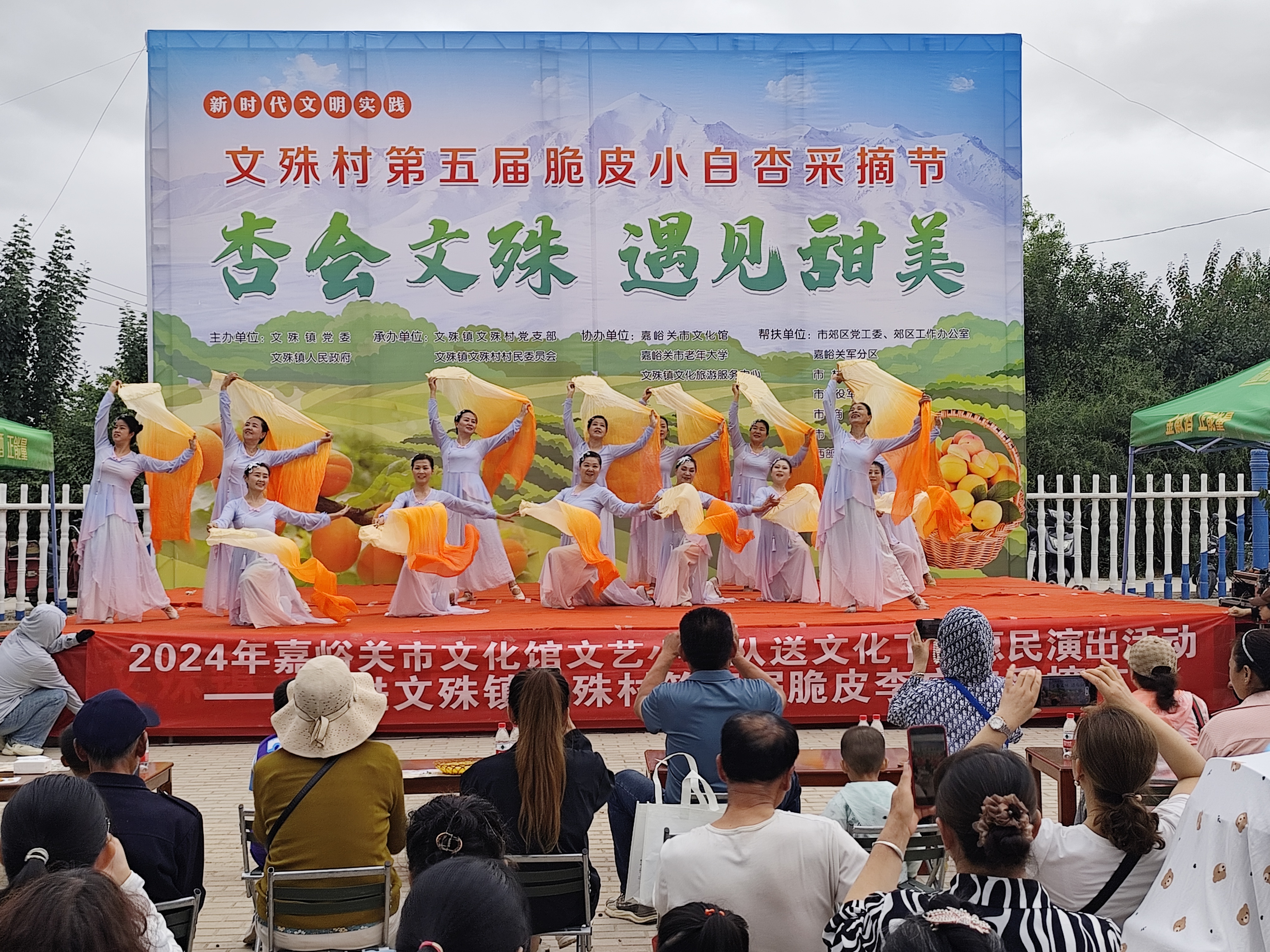 麦黄时节杏儿肥,老树累累枝头垂。6月29日上午,嘉峪关市文化馆文艺小分队走进文殊镇文殊村“杏会文殊·遇见甜美”第五届脆皮李广杏采摘节带去了精彩的演出节目。舞蹈《黄河谣》飘舞的扇子为炎热的夏日送去了阵阵清凉,欢快的藏族舞蹈《吉祥锅庄》热烈奔放,将节会气氛推向了高潮。