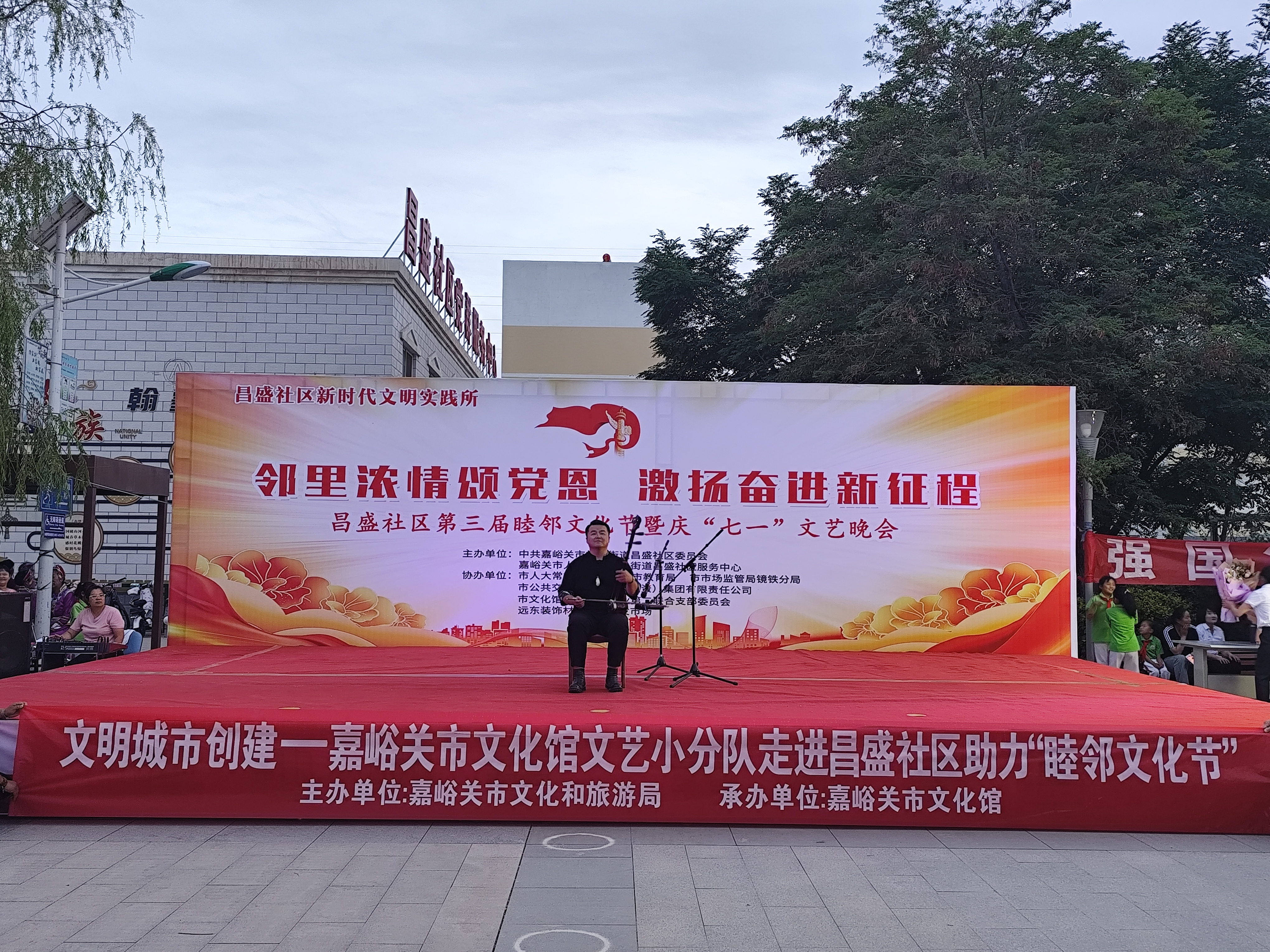为丰富社区居民的精神文化生活,推动新时代文明实践文化服务工作走深走实,6月26日晚,嘉峪关市文化馆文艺小分队走进昌盛社区,为“党建引领聚合力 睦邻共治筑同心”社区文艺汇演活动送上了精彩节目。二胡《战马奔腾》《狂野飞骏图》赢得了居民的阵阵掌声,合唱《长城颂》《唱支山歌给党听》带动现场观众朋友们共同高歌,将活动推向了高潮。