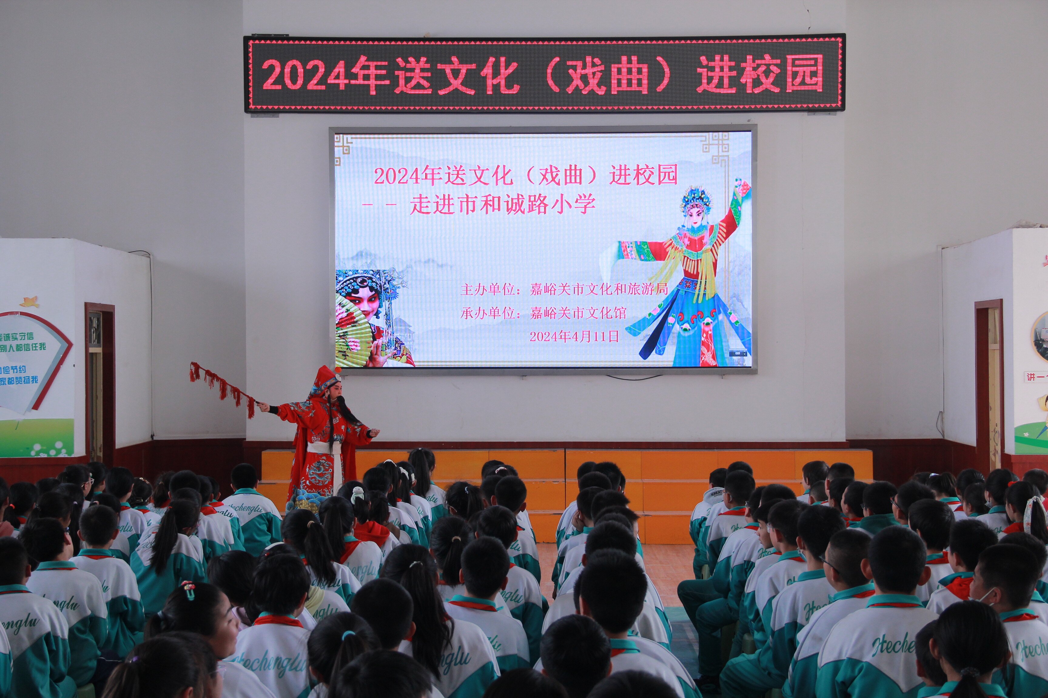4月11、12日,市文化馆送“戏曲进校园”活动走进了市和诚路小学和迎宾路小学,为700余名小学生开展了戏曲知识普及和展示活动。