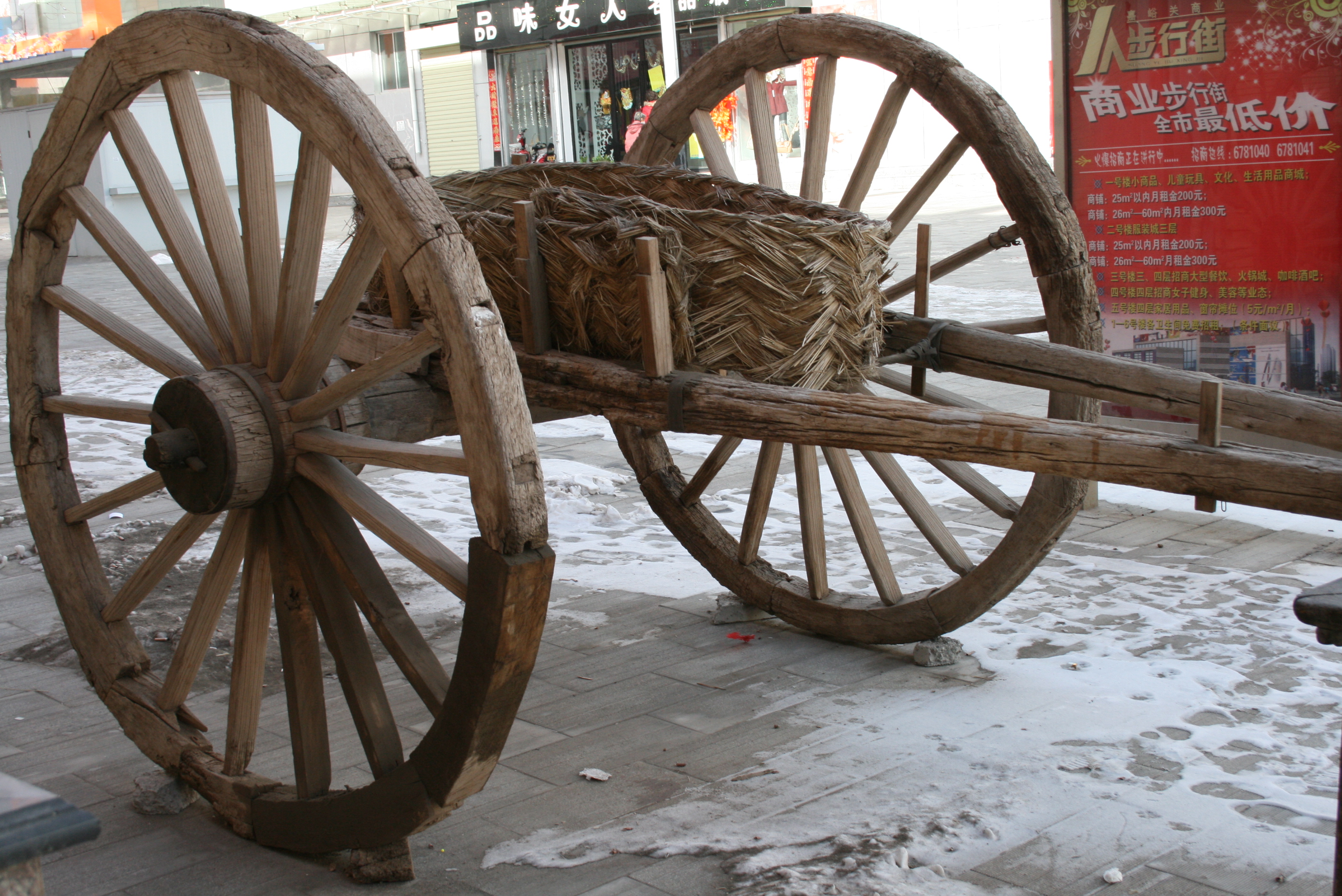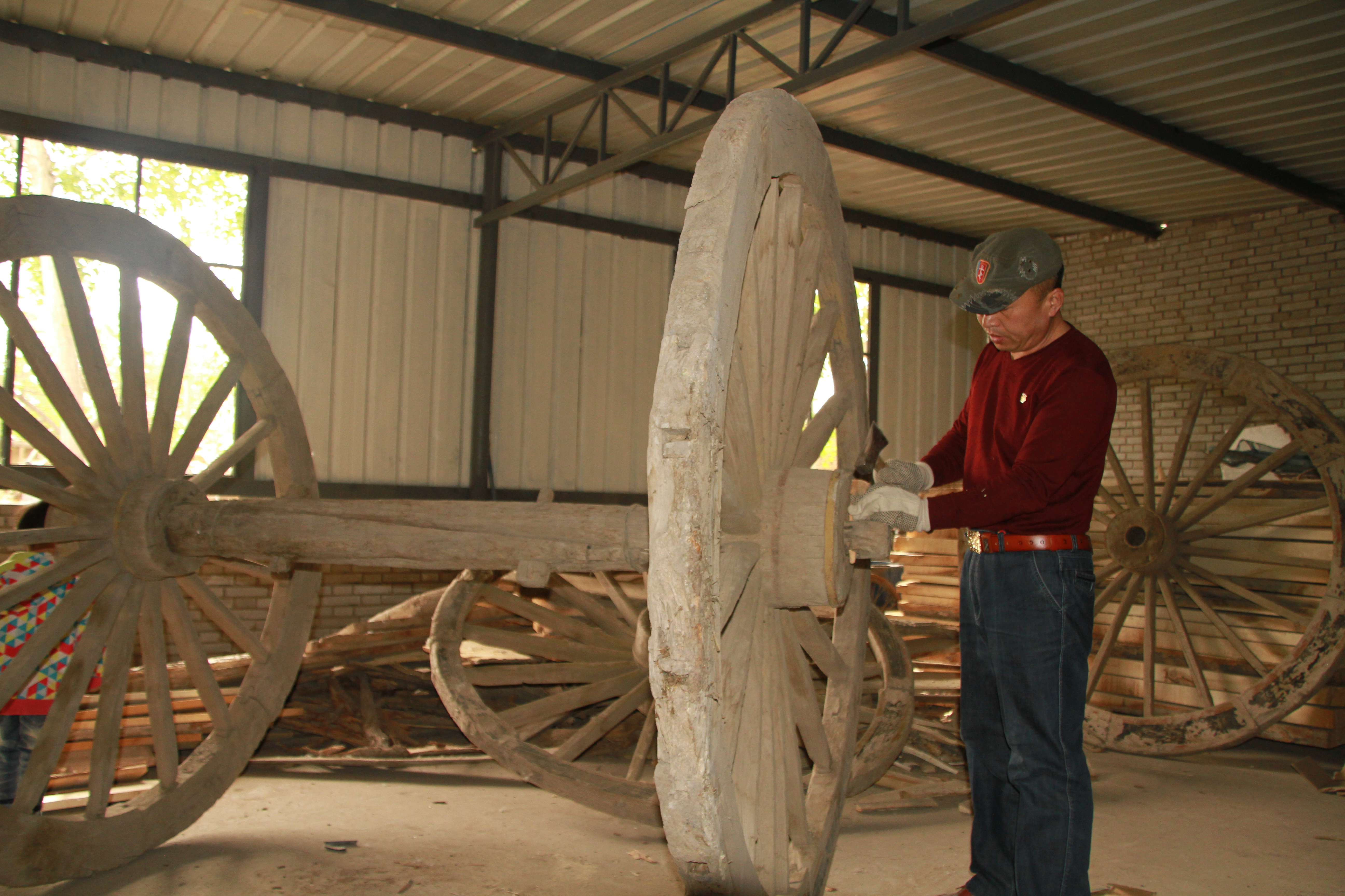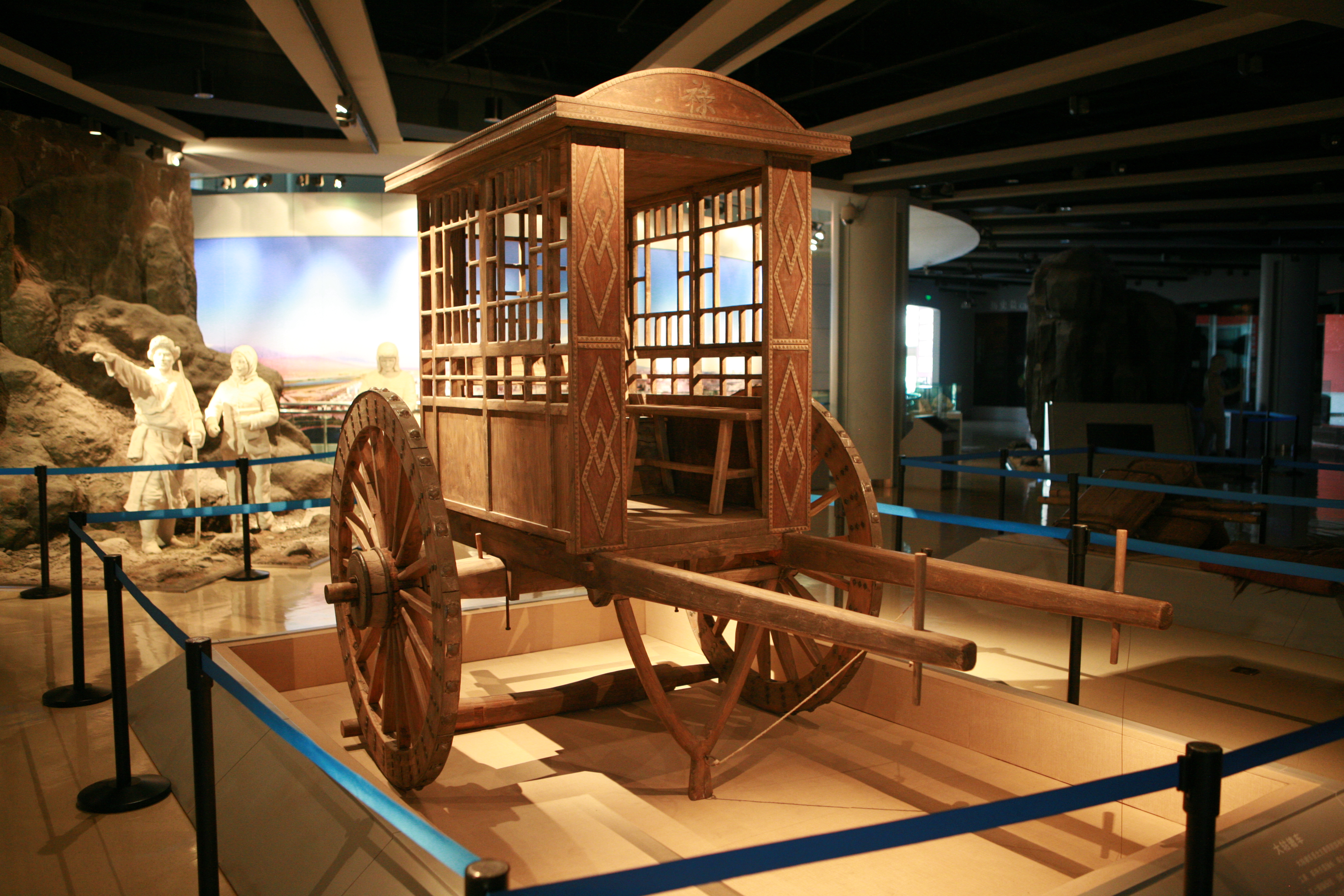 大轱辘车在河西广袤无垠的土地上,悠悠转动了千百年。这里的人们根据实践经验创造出的大轱辘车轴长、轮高、颠簸轻,适合于在戈壁沙漠上行驶,是当地古代最主要的交通运输工具。新中国成立伊始,大轱辘车仍是农田运输、短途运输乃至长途运输的主要工具。大轱辘车由车轮、车轴、车排组成。车轮和车轴用榆木制造,车排用杨木或松木制造。车轮为双轮,车轮由车毂和九辋十八辐组合而成。1842年,林则徐经河西前往新疆,在甘肃境内的嘉峪关一带乘坐的就是这种大轱辘车,林则徐在其日记中还作了详细记载。