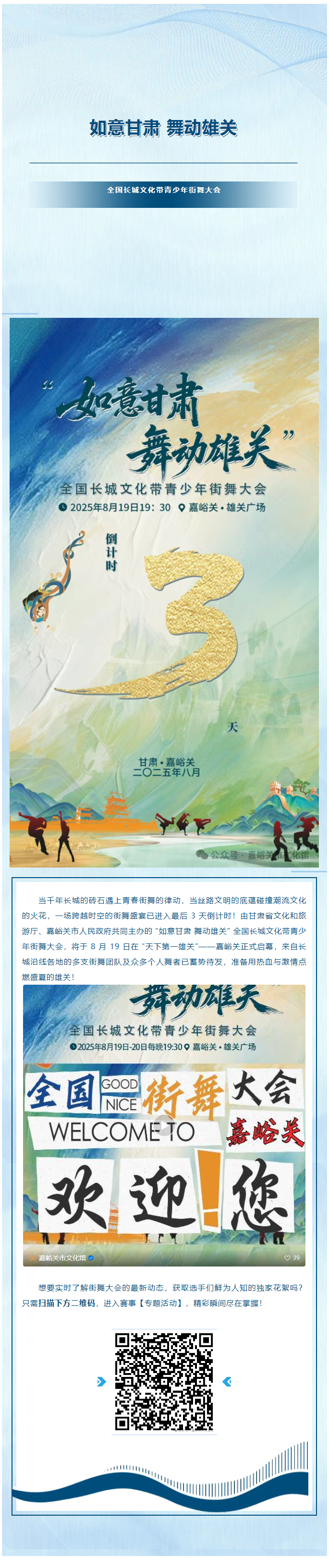 倒计时 3 天!“如意甘肃 舞动雄关” 全国长城文化带青少年街舞大会即将开启